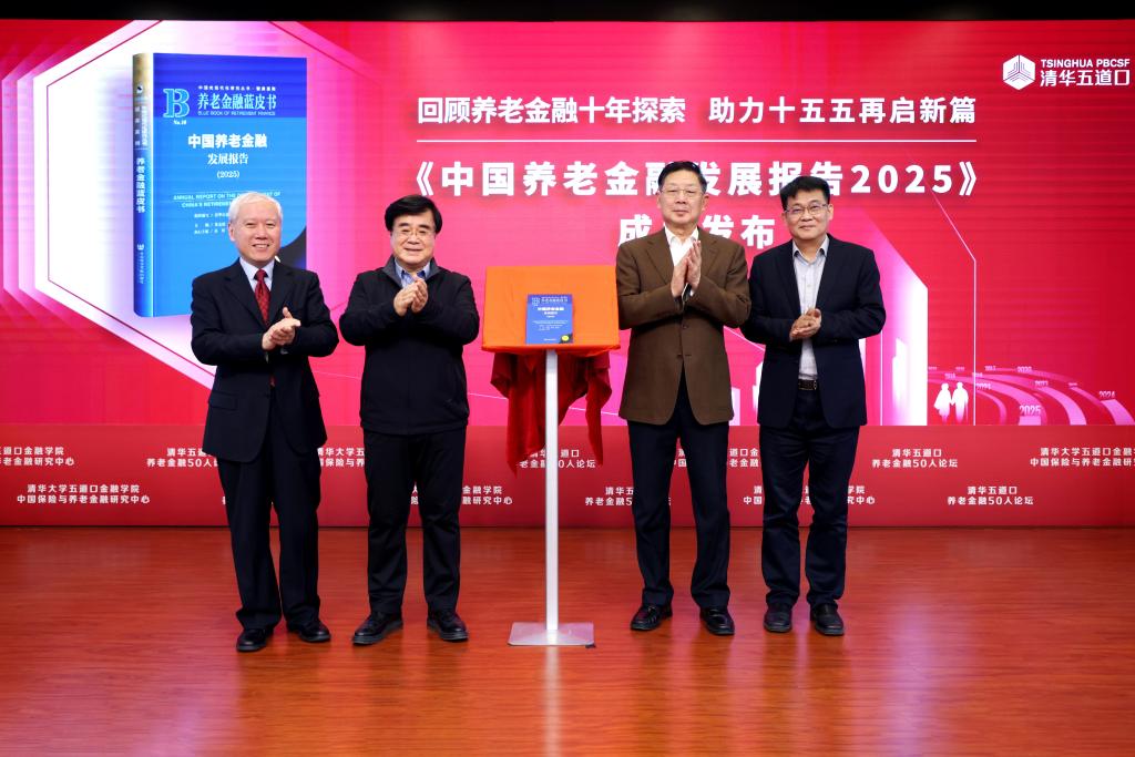 会上,由清华五道口养老金融50人论坛组织编写的年度研究成果《中国养老金融发展报告2025》正式发布,胡晓义会长、周延礼主席、丁志杰所长、董克用教授共同为报告揭幕。
